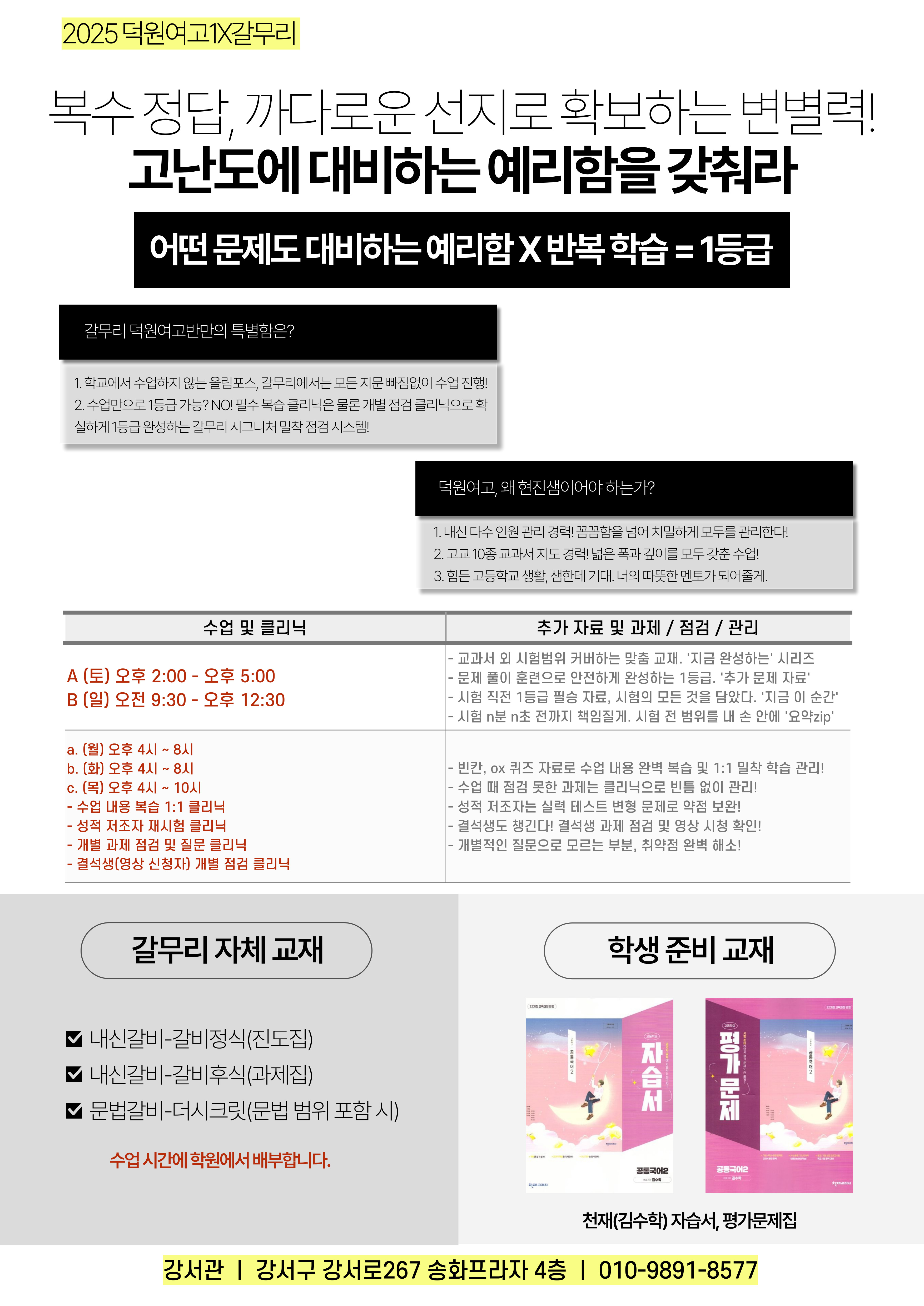 2025 덕원여고1 2학기 기말고사 안내문